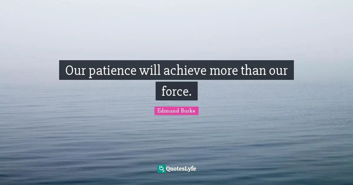 Linda Stack Our patience will achieve more than our force. Go to table of contents. Quote by Edmund Burke page. Achieve More than Our Force Monday January 17 2011. I was so proud. If you liked Our patience will achieve more than our force. Hello Jason how are you its been a long time since we last met.