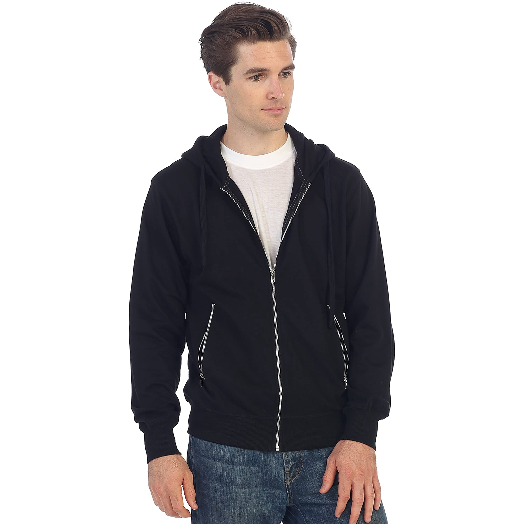 Ad Shop new-season collections at NET-A-PORTER. The full zip up hoodie jacket has 2 slanted side pockets with ribbed elastic hem. Mens Full Zip Solid Hoodie 2 Zippered Pockets Pull Cord Hood 52 Cotton 48 Polyester.