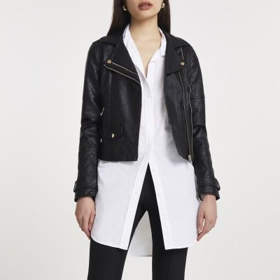 Order now for Free Click Collect and Delivery TsCs apply. Black regular fit PU long sleeve shacket. Buy River Island Womens Black Leather Quilted Biker Jacket.